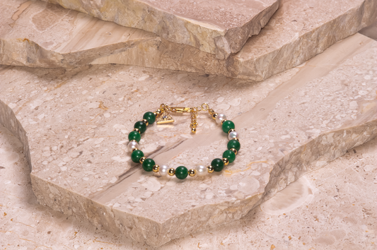 Unique Pearls & Blue Rondelle Jades Beaded Bracelet